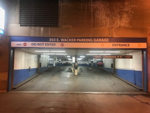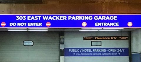 Entrance for the garage is located at 225 N LOWER Columbus. It is operated by ABM Parking Services and is the dedicated facility for the 303 E Wacker Building. Travel east on Lower Water Street until you reach the intersection of Lower Water and Lower Columbus. The entrance will be straight ahead of you. Look for a sign labeled “303 E Wacker Parking Garage.”